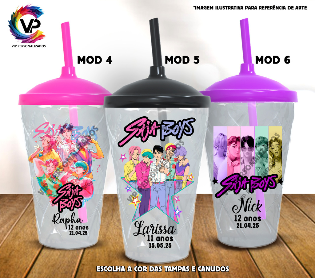 Tampa e Canudo: Diversas opções de cores, você pode dividir as cores de 10 em 10. (Embalagem com 10 unidades) OU no caso de Temas específicos a tampa e canudo seguirá conforme as cores do tema.